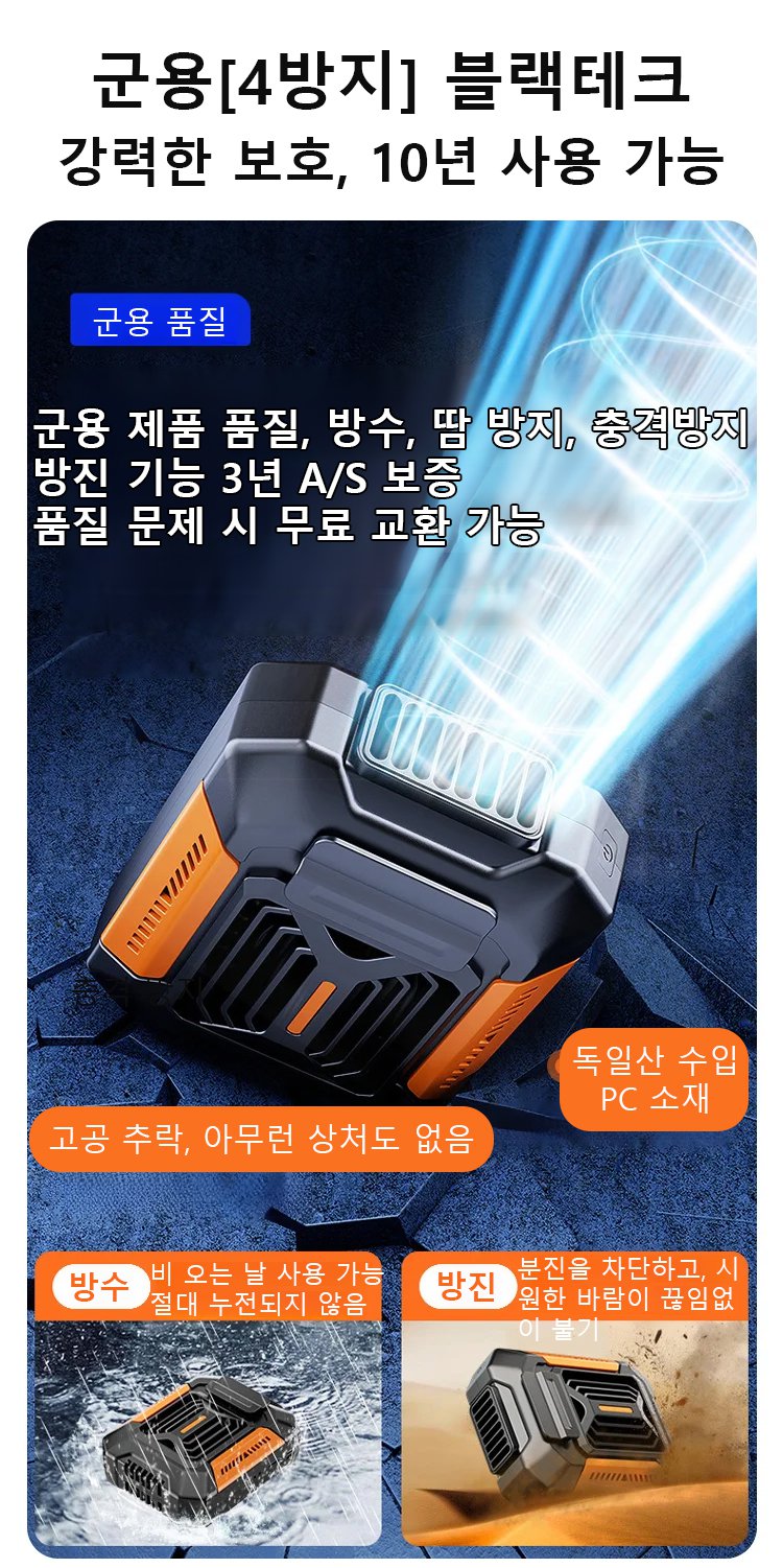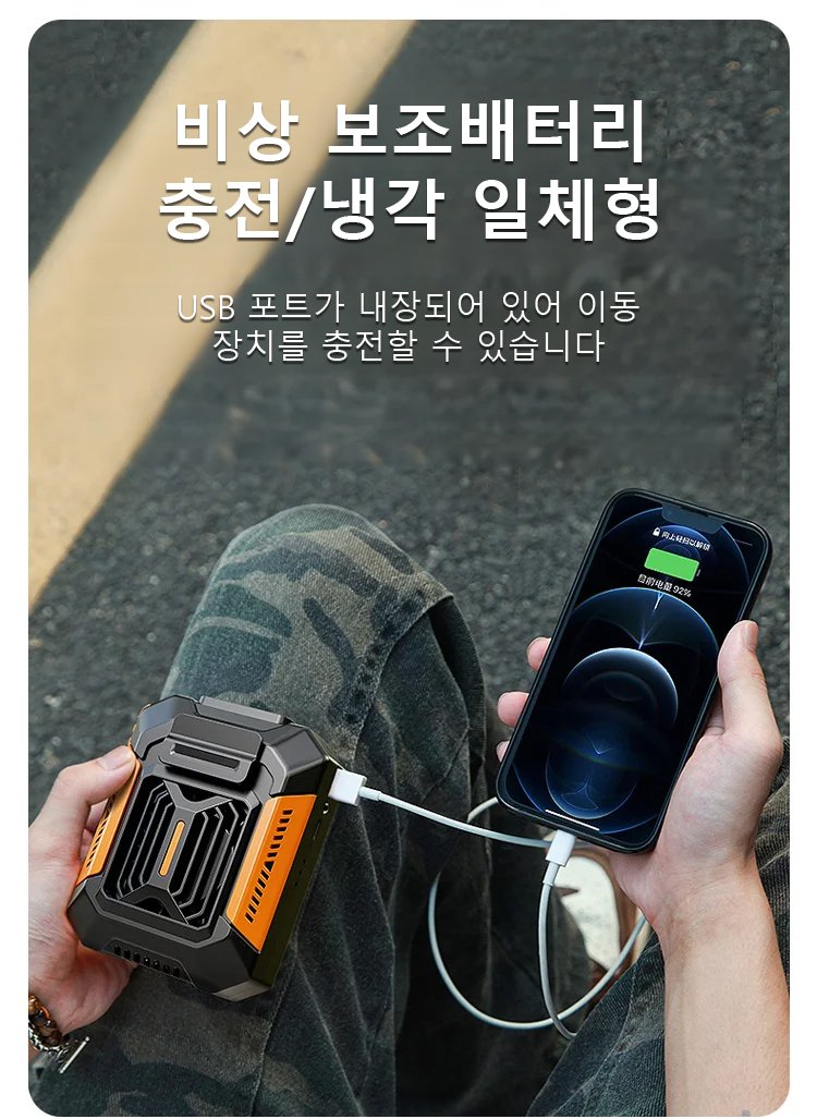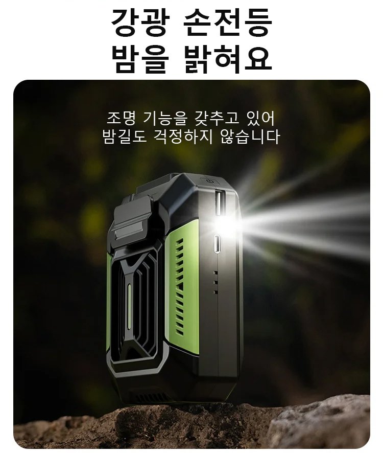 세 가지 기능 통합: 냉각 선풍기/보조 배터리/강력 손전등!