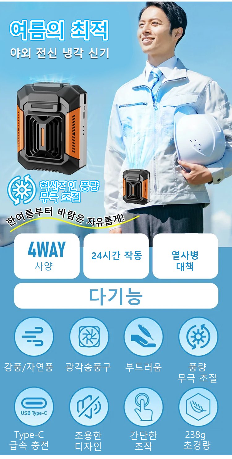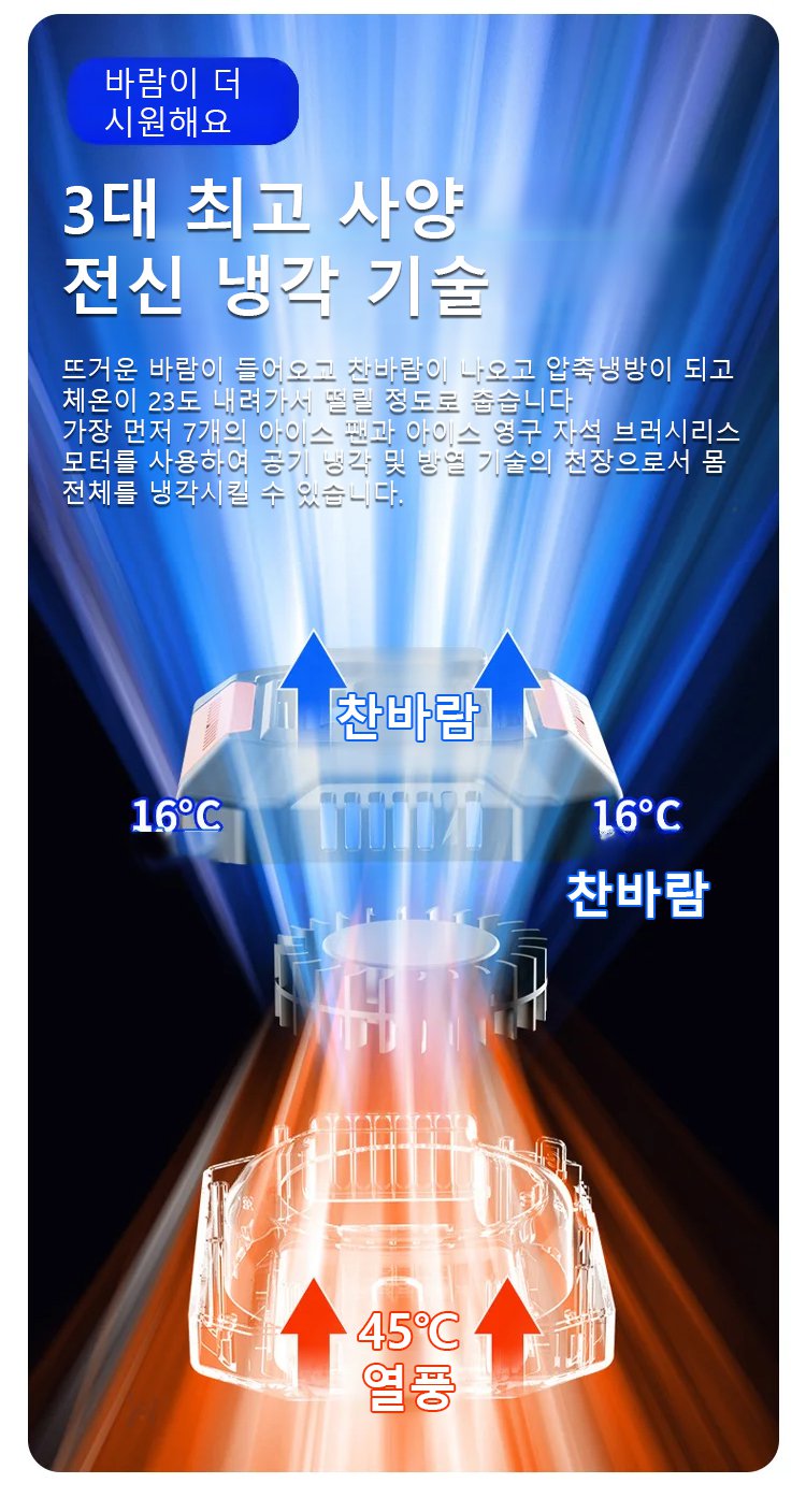 16도의 시원한 바람이 온몸을 감싸고, 35℃의 폭염에서도 땀 한 방울 흘리지 않게 해주는 마법 같은 도구!
